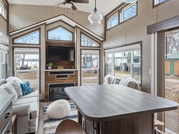 Welcome to Timberwoods Resort Community, where life feels like a leisurely vacation! Tucked by Lake Augusta with access to Clearwater Lake, enjoy over 3000 acres of aquatic adventures. Step into the charm of this seasonal retreat, where the 2018 furnished park model beckons you with all the modern comforts you crave for your lakeside getaway including a fireplace, gas stove, wine fridge, and ample sleeping space. Storage is plentiful with a pantry and built-ins. Outside, relax on the deck or store your toys in the storage shed. Enjoy resort amenities like sand beach, volleyball, basketball courts, and more. Exciting news! Another park model is up for sale right next door, bringing the opportunity to have family and friends conveniently close by. Imagine the fun of sharing this resort-style living creating unforgettable lake memories.