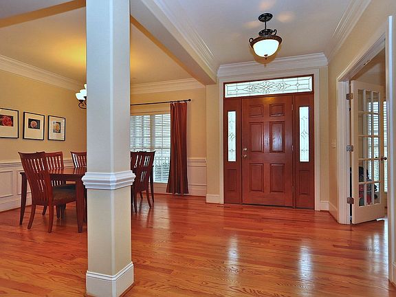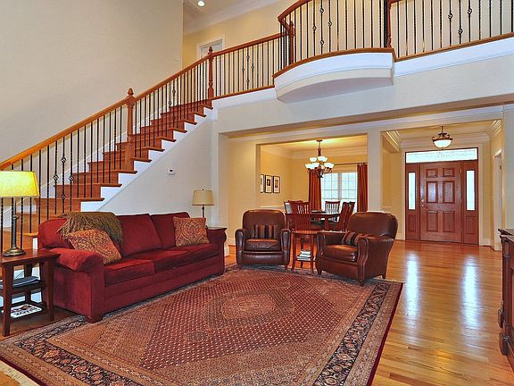 Beautiful turn key home featuring refinished hardwoods up and downstairs, choice of master up or dwn, tile floors in all baths, granite, SS appliances, dbl ovens, central vac, media room, large covered porches on private lot, full yard irrigation. Private lot backs up to Colonel Francis Park. This could be the best deal in town!