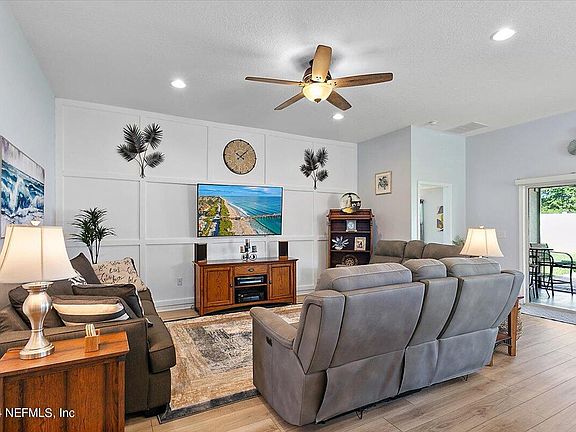 YOU DON'T WANT TO MISS THIS ONE! This fantastic 3br/2ba home is filled with upgrades and is located in the beautiful community of Fox Creek. CURB APPEAL PLUS! You'll love sitting on the front porch that overlooks the lush beautifully landscaped front yard. Luxury Vinyl Plank throughout the living areas and the owner's suite. The fully equipped kitchen features 42'' cabinets, quartz counters, farm sink & large walk-in pantry with upgraded pantry door. The light and bright breakfast nook and kitchen overlooks the family room that features a beautiful accent wall. Large owner's suite with recessed ceiling and ensuite bath that features a super shower, dual vanity and large walk-in closet. Spacious secondary bedrooms and guest bath. Spacious laundry room. Upgraded lighting and ceiling fans throughout. You'll love entertaining on the large screened enclosed lanai that overlooks the large back yard with paver patio and vinyl privacy fence. The two car garage features pull down attic stairs that lead to additional storage area that includes an insulated storage area with positive air venting. In addition, the garage and the rear lanai ceiling have been insulated. This home is located just a few houses from the fantastic Fox Creek Amenity Center with a sparkling pool, splash pad, playground, community room, tennis, pickleball and volleyball court! All of this and no CDD FEE! Super great location, close to the Oakleaf Town Center, and easy access to major highways. Make your appointment today!