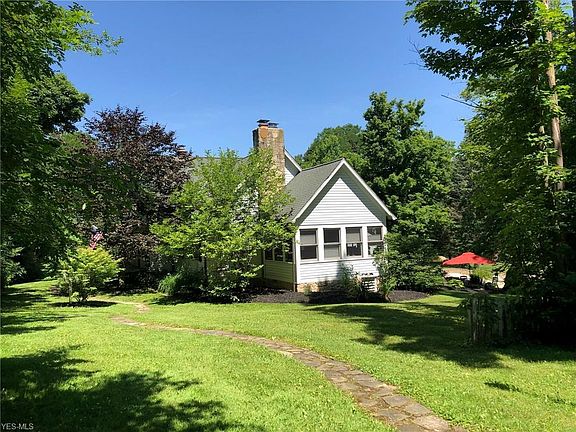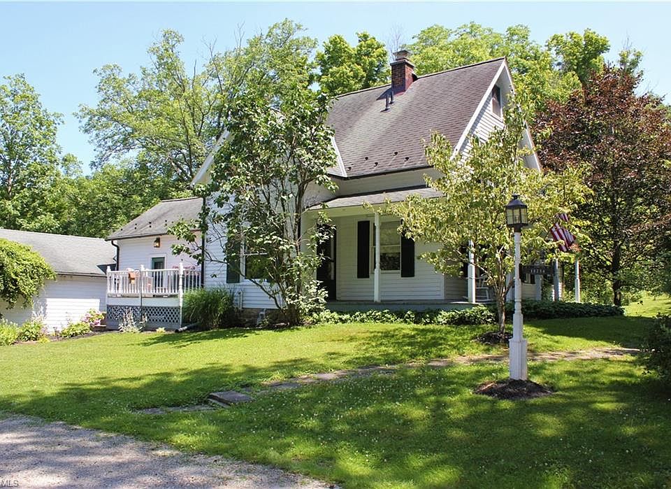 A nature lover's dream property! 8+ acres of beauty and serenity. This magnificent home is located on Mitchells Mill Rd North of Chardon Ohio. Property like this is a rare opportunity in Geauga County! A beautiful barn with horse stalls, side pastures, out building/workshop, chicken coop, and garden area frame the entrance to the woods- featuring a creek bed that winds along a hiking trail. These are just a few of the perks! A private master suite with walk in closet and full bath is located on the lowest level with a walk out that exits to a patio fire pit overlooking the lake and beach area. The main living area hosts an exceptional great room perfect for entertaining large gatherings. The beautiful cherry wood ceiling was constructed from trees harvested from the property. A private office space with surround windows and a stunning view of the lake is located off the great room. Three bedrooms and a Jack and Jill bath is located on the upper floor. This renovated farm house is a perfect mix of country and contemporary traditional styles. The original part of the home was built in 1871, renovations and additions were added in 1997 and have continued to be updated. This home has been exceptionally cared for and well maintained. New boiler system was installed and updated. Many improvements have been made throughout the home and on the property. Call for your private tour, before it is gone!