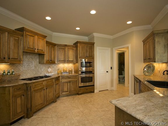 Elegant open plan with exceptional custom finishes & gorgeous private backyard in desirable Jenks SE! Vaulted & beamed Family Rm, granite Kitchen w/ walk-in Pantry, 2 Dining, Master & Study down. Large Game Rm & 3 Bedroom Suites up. Community pool & park.