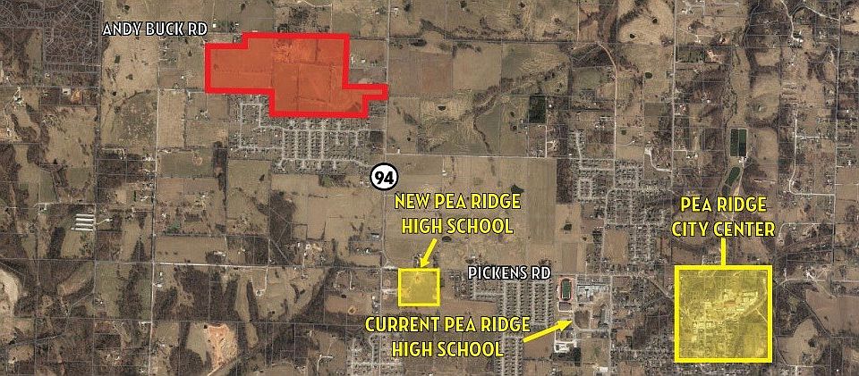Great location near downtown Pea Ridge via Hwy 94. Approx. 2,325' frontage on Andy Buck Road. Sewer is south at subdivision. Public water is at street. Near new and current Pea Ridge School. Access from Hwy 94 & Andy Buck Rd.