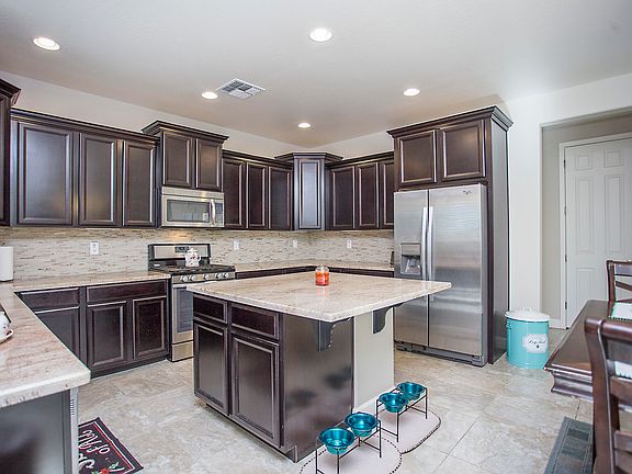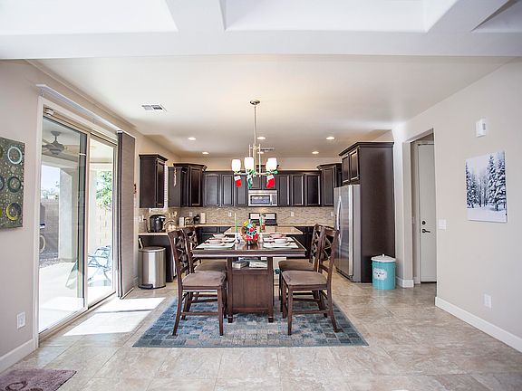 Large & roomy north/south exposure 4 bedroom. In Eastmark with all the amenities & activities for kids & family. New schools nearby. From upstairs balcony you have mountain views and a beautiful view of a lush quiet park. Master is spacious w/lovely bath & dressing area, lots of closet space. Roomy 2nd level loft w/nice size bedrooms. Kitchen is loaded with upgrades inc stainless steel appliances that stay with the home. (Washer/Dryer stay too) Covered patio with kitchen/family room access make it great for entertaining. House backs up to a lush greenbelt with trees that block view and sounds. 3 car parking in tandem garage w/abundant storage. Only lived in 6mos per year so it shows like new home. Truly move in ready!