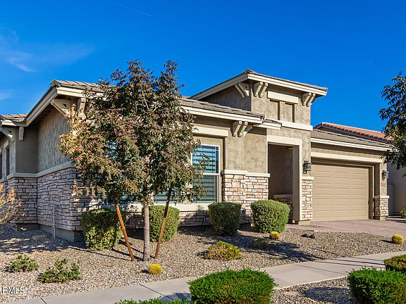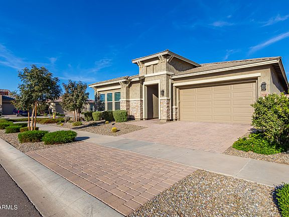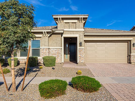 This is a $180k roughly builder upgraded home on a premier lot backing to the green park with no direct neighbor behind! You will love the woodlook-like flooring throughout the home. Kitchen features huge island, the, white cabinetry 5 burner gas cooktop, upgraded appliances, extended cabinets in dining area in kitchen. Enjoy the fireplace wall in the family room & the sliding glass doors that wrap around into the sitting area to enhance the AZ indoor/outdoor lifestyle. Backyard has pavers, beautiful synthetic grass turf. Spacious master has large, tiled shower, large tub and walk in closet. It's one of the best in the Eastmark!