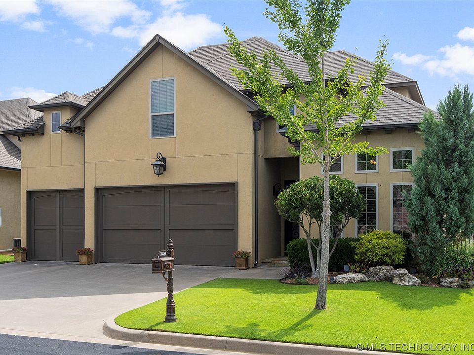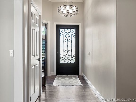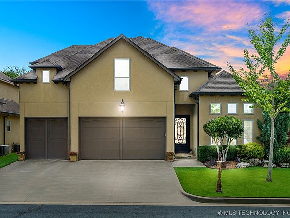 Looking for your dream home? Look no further! Beautiful 1 owner transitional style home located in a gated neighborhood in Bixby north district. This stunning home offers 3 bedrooms, study, 3.5 baths and 3 car garage. With it's high ceilings and unique design, this home exudes elegance and sophistication. Upon entry of this very well maintained home you will find 10-12' ceilings thru-out the main level, extensive hardwood floors, and designer finishes. The spacious kitchen boasts custom cabinetry and finishes, large center island, ample storage, and walk-in pantry. The primary suite is a sanctuary of relaxation with its luxurious en-suite bath and walk in closet. Beautiful outdoor living with custom patio decking and flagstone sidewalks. Too many features to list!