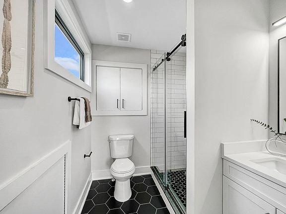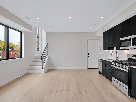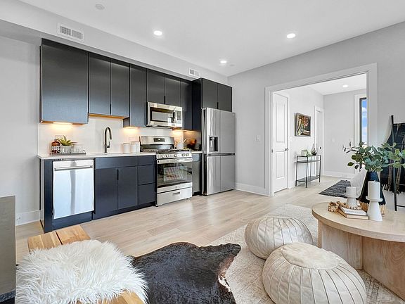 Stunning end unit penthouse condo, flooded with natural light from oversized black-framed windows adorning both floors. Wide-plank white oak floors add warmth and elegance, while the sleek black flat-front cabinetry in the kitchen is perfectly paired with pristine white quartz countertops and matching backsplashesa striking balance of bold and refined. Watch the sunset from your private rooftop deck, surrounded by lush and burgeoning greenery, or raise a toast on your main-level balcony. Two private outdoor spaces.