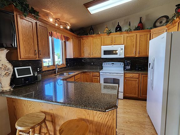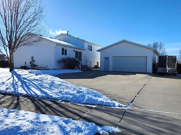 Check out this immaculate 4-bed 2-bath home in SE Mandan! This property is ready for all your toys with a 3 stall attached garage and a 24 X 32 detached garage, with a 60ft camper pad! As you enter the main level, the foyer leads to the vaulted living area which beams with natural light. The updated kitchen has a convenient breakfast bar, beautiful granite countertops, oak cabinets, tile backsplash, and a pantry. As you go up a few steps, you will find two bedrooms and a full bathroom. The updated bathroom has new vinyl plank flooring (2022), a new granite vanity top, and additional access to the primary bedroom. The lower level offers a large family room with daylight windows, and a 3/4 bath with a laundry room. Head down a few more steps and will find two additional bedrooms with egress windows and large closets. The yard is partially fenced and features a 26 X 13 concrete patio (with 50 amp service for a hot tub), underground sprinklers, concrete curbing, and many established trees and shrubs. The attached garage is finished and heated, features hot/cold water with a floor drain, finished floor, attic storage, and many cabinets. The detached garage features a 100-amp electrical service, a 30-amp exterior outlet near the camper pad, and additional attic storage. A few recent updates include: a new Pella patio door with blinds inside the glass (2022), plush carpet in the upper level bedrooms, new roof (2013) and seamless gutters on the house and detached garage (2016), new front screen door, exterior doors on the house were aluminum wrapped (2016), home is pre-wired for a portable generator (includes gas connection), hard wired security system with 4 exterior cameras, and a ring doorbell. Take a closer look at all this home has to offer! Contact a realtor today for a private showing!
