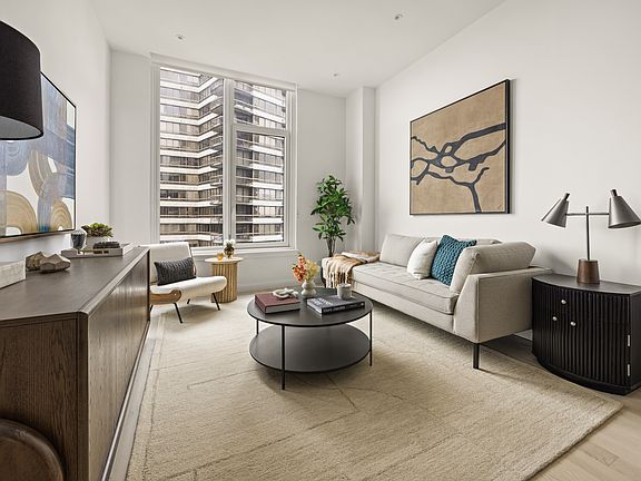 Discover the art of refined living. This residence at The Remi seamlessly blends form and function, featuring expansive windows, soaring ceilings up to ten feet, and sweeping city and Central Park views. Enjoy the convenience of keyless entry, individual climate control, an in-unit washer/dryer, and a premium GE and Bosch appliance package.
