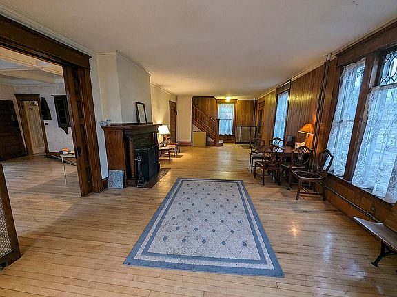 Huge potential to build equity in this beautiful historic home. Loads of character in this huge 4 bedroom, 2.5 bath home. 9ft ceilings on main floor, with coffered ceiling in dining room. Large living room and dining room with amazing original woodwork, fireplace and hardwood floors. Amazing staircase with massive rounded corner and stained glass windows leads up to 4 large bedrooms and bathroom. Large windows, floor to ceiling, throughout that let in amazing natural light. Hardwood floors throughout. 2,240 sq ft on 2 main levels with additional 2,000 sq ft available to be finished in basement and walk up attic. Radiant heat with natural gas boiler and cast iron radiators. Double garage by the house. Oversized yard, 70x250, with woodworking shop in the back.