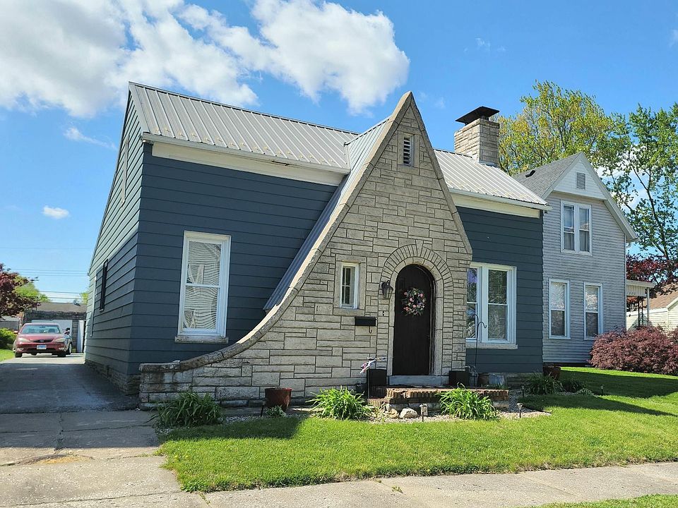Simply irresistible! This charmer offers tons of updates, character and is move in ready. Updates include: Water heater 3/'23, metal roof on front portion of home approx. 10 yrs. and back freshly painted 4/'23. Full bath remodel 4/'23, Laundry room completed 4/'23, gutters to be installed prior to closing by local vendor. Vinyl replacements throughout most of the home. Boiler serviced 2 years ago. Home exterior painted '20. Washer/dryer hookups also available in kitchen pantry space. 3 window units to convey at closing. Large flat backyard with alley access and driveway from alley to Adams street. Patio for entertaining and relaxing out back. Seller to offer $1500.00 allowance for floor coverings for 2nd level. Total sq. footage 1737.