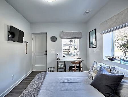 COMFY Completely Renovated -- Hotel-Like Private Studio Apartment located 10-15 min drive to Downtown Atlanta! Everything is Exactly Like the Pictures! This Studio apartment offers 1 Queen Bed + kitchenette with a mini stove and fridge & full bathroom + handy working desk + Full-Length Mirror and Closet + Free Fast Wifi and Smart TV + Cleaning & Linen service can be provided weekly at extra cost (no laundry on site) 15 min drive ATL Int. Airport 10 min Drive Downtown or Georgia Aquarium 5 min drive from Mercedes-Benz Stadium!
