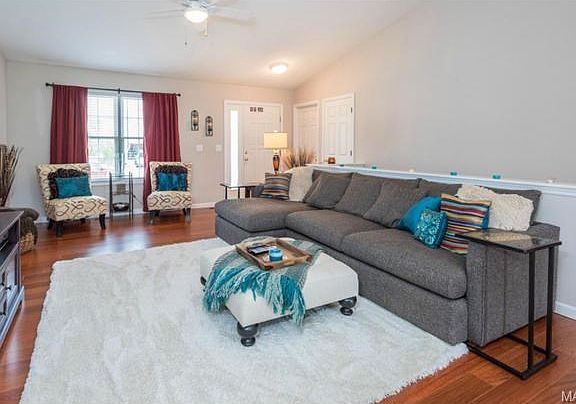 Open June 7 from 1-3pm. Neutral and Bright Open Floor Ranch located in Culdesac with large level fenced backyard. Vaulted Great Room has neutral paint, ceiling fan, wood flooring and opens to kitchen and breakfast room with Maple Cabinets, black on black appliances, pantry and atrium door leading to the fantastic backyard. Enjoy entertaining in the finished lower level with loads of space, neutral paint, wood floors, sleeping area, rough in bath ready for finish and lots of storage. Conveniently located near TR Hughes Ballpark, Shopping and Highway. Subdivision amenities include Swimming Pool, Pavilions, playgrounds and more.