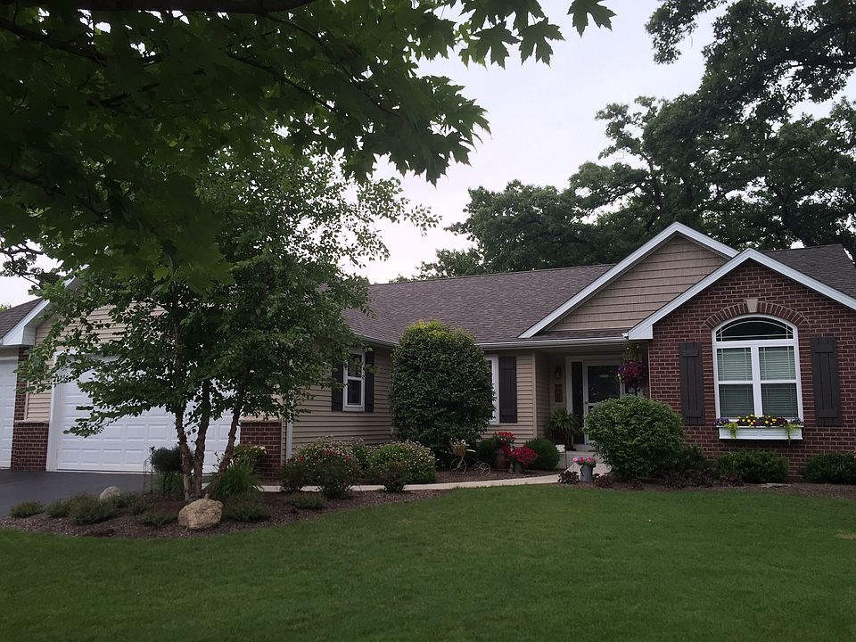 This custom built ranch home offers 5 Bedrms, 3 Full baths & 3 car garage. Open Concept/Split Bedroom floorplan. Kitchen has Apron Farm Sink, Granite Countertop, and Pantry & Breakfast Bar. Hand scrapped Hardwood floors throughout. Cathedral Ceilings & Gas Fireplace in LR. Lower Lvl partially finished w/full bath & HUGE storage room. Situated on professionally landscaped with concrete patio and gazebo perfect for entertaining. Within walking distance to the lake, walking paths and school.