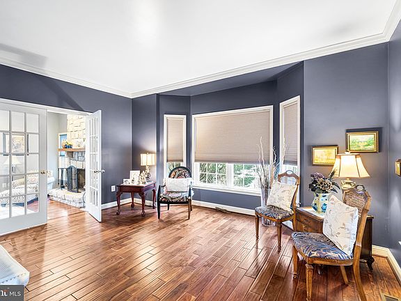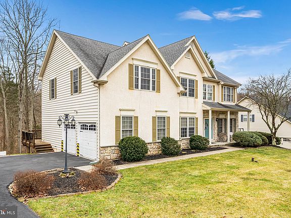 Don't miss this stunning four-bedroom home nestled in the desirable neighborhood of Providence Meadows. This beautifully maintained home boasts hardwood floors throughout and a spacious, versatile floorplan great for entertaining! The front formal Living Room features a bump-out bay window, crown molding and charming French doors leading to the Family Room. The formal Dining Room is adjacent to the Eat-In Kitchen with upgraded countertops, a center island, and stainless steel appliances. The adjacent eating area has sliders leading to the oversized rear deck overlooking a private, wooded view. The step-down Family Room boasts a cozy stone wood-burning fireplace creating a warm & inviting atmosphere and great flow with French doors leading back to the front Living Room. The upper floor offers four large bedrooms and two full bathrooms, including the sprawling Primary Suite with vaulted ceilings and a luxurious ensuite full bathroom with a soaking tub, shower and dual-sink vanity. The spacious basement has 9-foot ceilings, plenty of storage space and walks out to a large patio. Don't miss your chance to own this extra spacious, home in a great location! Schedule your showing today.