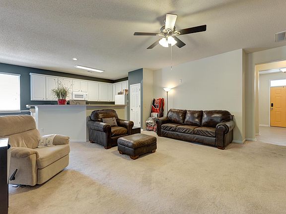 Are you looking for a home convenient to everything? Well, you found it! This cozy home is located in the Hunters Bend Subdivision. The first feature you will notice about this home is the front porch. Can't you see yourself relaxing in a rocking chair and enjoying the view of the neighborhood? The large tile foyer is perfect for greeting your family and friends. Two secondary bedrooms and a bath are down the hall on your left. You could easily fit a queen-size bed in either room, and both have double-door closets. The shared bath is spacious and has a transom window that provides natural lighting. You will find the walk-in laundry room with built-in shelving at the end of the hall. This open concept floor plan has a great flow for everyday living and entertaining. This kitchen has ample