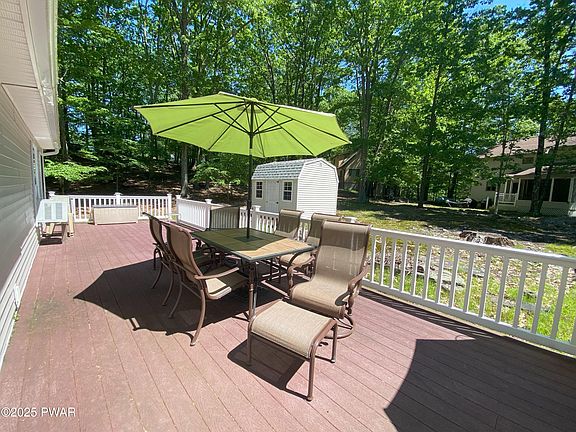 This home is located on a quiet, cul-de-sac and is perfect for one floor living with an amazing primary bedroom and en-suite bathroom. The special exterior details give this property so much curb-appeal, it's a pleasure pulling into the flat, newly paved driveway that can easily park 6 cars. Relax and entertain on a new Trex composite deck in the backyard. Recent upgrades include new carpet in the Livingroom, new premium vinyl plank flooring in the kitchen & bedrooms, and new, stainless-steel appliances. The home is being sold fully furnished too! As part of the WLE community, you have privileges to access 2 private lakes, beaches, 2 outdoor pools, an indoor pool & gym, lodges & game room as well as access to the private community marina on the big lake, Lake Wallenpaupack! Sewer, water, and trash are part of the low community dues.