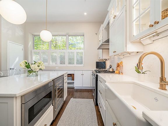 Welcome home to this spectacular 2,068 SQ FT freestanding townhouse w/ parking and outdoor space located in a private gated community. With (2) deeded garage parking spaces, wood-burning fireplace, 3 bedrooms & 2.5 baths, this home is truly one-of-a-kind. Chef's kitchen includes endless custom cabinetry, large breakfast bar island, wine fridge, and quartz countertops. Commodious living space w/ soaring 12 ft ceilings and wood burning fireplace leads to a beautiful private patio, perfect for entertaining at home. Second level leads into a lofty primary bedroom full of light w/ ensuite bathroom - 2 additional bedrooms + full bath. Bonus third floor with dual skylights allows for a perfect home office or playroom. Other features include high ceilings w/recessed lighting throughout, California closets, plantation shutters, new roof, new HVAC & furnace, motorized blinds and skylight. Close proximity to NYC transportation, shopping ,cafe's, restaurants, and parks. Low Taxes $12,694