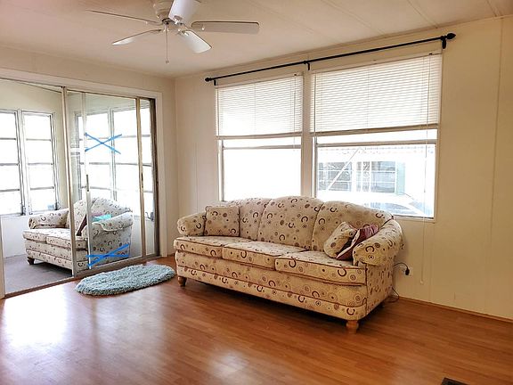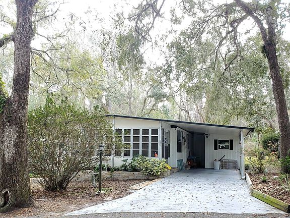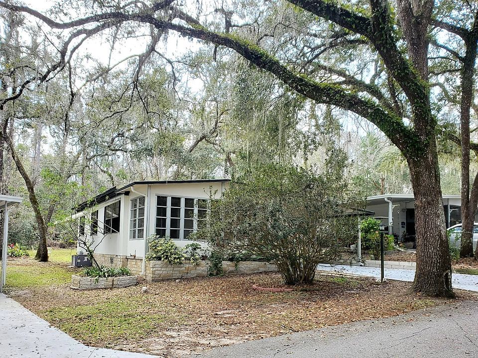 THE BEST BACKYARD! This adorable 2 bedroom, 2 bath dollhouse is smaller but has some awesome features! There is a gorgeous, large backyard with woods behind it and no rear neighbors! The attached shed/workshop is actually both a small shed for laundry and storage plus a very large shed for workshop and storage. Access to backyard makes this a perfect set-up. Inside is very attractive and functional. There is a nice sunroom on the front with glass windows for year round enjoyment. The carport has room for two cars, so you could easily screen in an area here for additional usage. Bright and cozy kitchen with white cabinets. Soft colors, all plywood sub floors and pretty flooring make this home very appealing. The exterior was painted in 2020. The home has new awnings. Roof was coated in 2018. This home is offered mostly furnished. Most everything you see stays. Located in the age qualified community of Clover Leaf Farms. Located north of the Tampa/Clearwater/St. Petersburg metro area, Clover Leaf Farms is a 55+ retirement mobile home community that is big on amenities. Offering two spacious clubhouses, billiards, shuffleboard courts, pickle ball and catch/release fishing you won't be bored here. There is also a dry sauna, indoor heated swimming pool, and a whirlpool-spa-hot tub as well as a large heated outdoor pool and new fitness center & billiard room. This Brooksville, FL mobile home neighborhood will never leave you wanting. Clover Leaf Farms also provides its residents with a pet friendly environment that includes RV storage, a scenic picnic area, and on-site management. With so much to offer, you can't go wrong when you choose to live at Clover Leaf Farms.