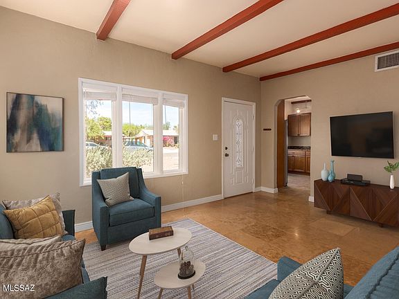 Charming vintage home with all the right upgrades! Close to U of A. Spacious living room with exposed beam ceiling, formal dining or family room. Beautiful travertine flooring throughout common areas, new vinyl plank flooring in bedrooms. Enjoy cooking in the gourmet kitchen with upgraded cabinets, granite counters, pull out shelves and stainless steel appliances! Private large master suite with sliding door to back yard. Dbl pane windows with lifetime guarantee for new owner. The back yard is fenced with a block wall, & shade trees, Roof was recently recoated, AC & water heater replaced in 2020. And the neighborhood park is only a block away. Master bedroom addition was completed in 1979.