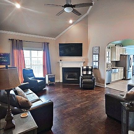 New on this market! 3 bed, 2 bath House features vaulted ceilings crown molding and blinds throughout. Hardwoods in living areas with tile in the kitchen and baths. Enter the house through the inviting foyer. Relax in the living room complete with working fireplace and large ceiling fan to stay comfortable all year long. The updated kitchen is a showroom with custom countertops, stainless appliances, tile backsplash, large stainless farm sink, bar and pantry. Two separate outdoor patio spaces (one covered) can be accessed from the kitchen for grilling and outdoor entertaining. Make yourself at home in the spacious master bedroom. New large ceiling fan with remote. Walk into the master bath which boast divided his/her vanities, a jetted tub and walk-in shower. Then fall in love with the large walk-in closet.