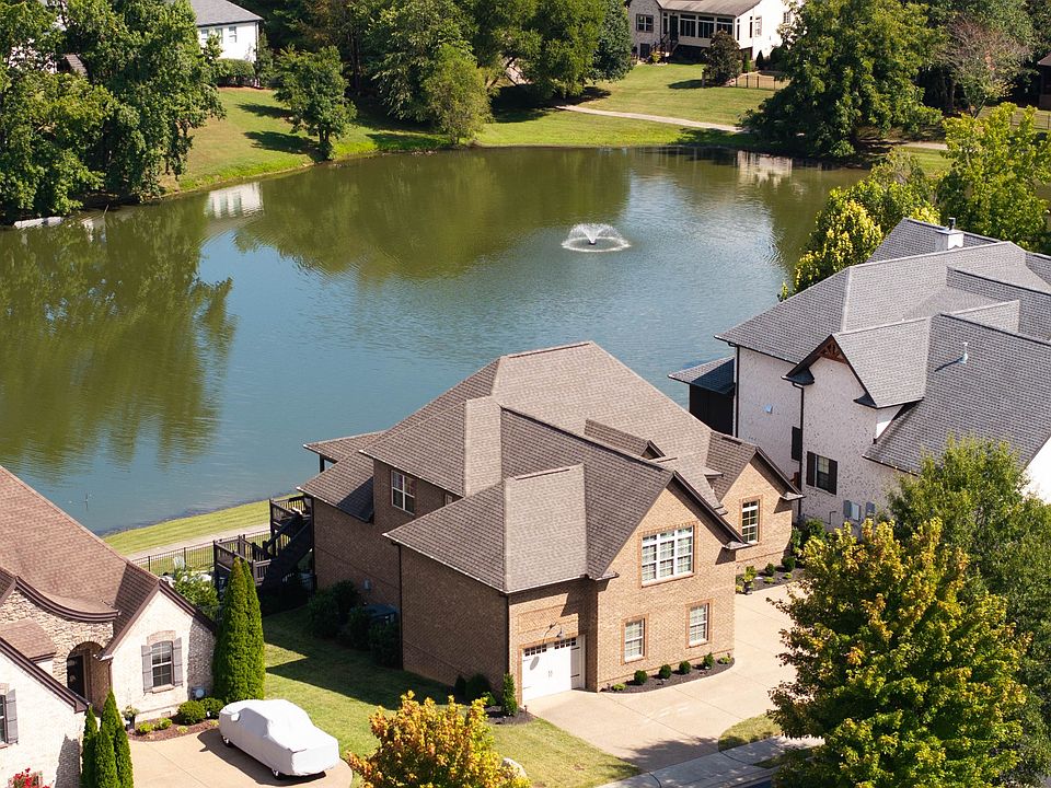 Incredible breathtaking views! Located on a private lake in a gated community, this all brick luxury showplace has an open floor plan, huge gourmet eat-in kitchen, all stainless appliances, large walk-in pantry, formal dining, great rm with fireplace, coffered ceilings, three BR's on the main level, primary suite with massive walk-in closet, separate shower/tub/double vanities and tankless water heater. A 54 ft oversized deck (one half covered) with tv's, expands the length of the home with an equally spacious patio underneath. The rec room upstairs features a full kitchenette/two tv's, wine fridge and bar. Entertainer's dream with Sonos whole house speaker system, pool table (which stays) and a 24x11 media room with surround sound/three tv's. In 2020 sellers installed new roof, new luxury plank flooring throughout, & built the new outdoor patio with natural gas fire-pit. Tons of storage space..possible expansion walk in floored attic with 16 ft. ceilings, walk in crawlspace storage under the deck. Beautiful new landscaping in 2024, fenced back yard backing up to the walking trail that circles the lake. Three car immaculate garage features an EV charger! Just minutes from schools, shopping/dining, marinas and Old Hickory Lake! This house is even more stunning in person!