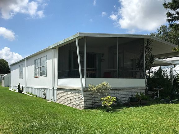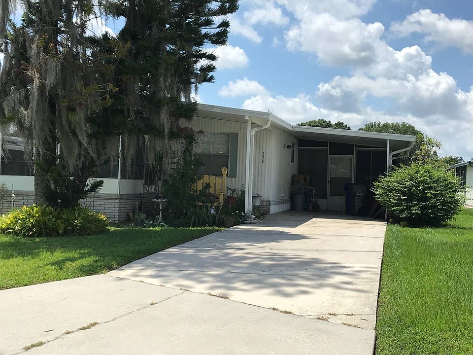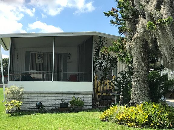 Call listing agent if you are interested in the house itself, and seeing it Saturday morning at Estate Sale. No showings till then, please. This is a double-wide, 1,152 sqft, 2 bed, 2 bath home that needs LOTS of TLC by someone wanting to do the work and build equity. This home is in popular Fountainview Estates on Lake Gibson, a 55+ community and Fisherman's Paradise. There is a lot to appreciate about this home including its large open living room and dining room. The dining room has built-ins for storage and display of your prettiest items. There are two screened porches, and an interior storage/laundry room. The washer and dryer do stay, and the washer is almost brand new, as is the refrigerator. Each bedroom has two closets, one of them is a walk-in. The Master Bedroom is quite large and has its own private bathroom. There is a new subfloor in the kitchen as well as in the closet that houses the hot water heater. You have to come see for yourself what improvements and repairs are needed, as this is an AS-IS sale with minimal seller disclosure information available. Fountainview Estates boasts a clubhouse, heated pool, shuffleboard court, pool table, boat slips and ramp, and fish-cleaning station. It's all here for you! Fountainview Estates is also a pet-friendly 55+ community allowing two small pets at 25lb max., is approximately an hour from beaches to the West and Legoland and Disney World to the East. Fountainview sits smack in the middle of all kinds of accessible shopping, restaurants, and medical services...most are accessible by golf cart! Good news with today's gas prices. Park approval is required. Rent is $504/mos. Application fee is $50 cash or money order per person; one person must be at least 55 years of age; second person 40 years of age.