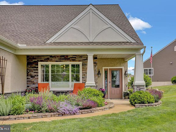 Priced to sell! WELCOME to this lovely home in Alden Place of Cornwall, a 55+ community. Upon entering this 2900 sq.ft. home, you are welcomed by the large open floor plan. To the left of the foyer is an office, resting beneath a coffer-ed ceiling and soft lighting. The heart of the home awaits in the spacious kitchen, complete with a breakfast bar for casual dining and ample space. It features abundant quartz countertop space, plenty of cabinets and fabulous lighting. Opening into an inviting great room with a vaulted ceiling, gas fireplace and lots of windows for natural light. A quiet sun-room /sitting area off the dining area offers another spot for relaxation or entertaining. The primary suite offers a spacious bedroom area and a custom walk-in closet. You will not want to miss the on-suite bathroom, tiled walk-in shower, with steamer offering a spa-like experience right at home. A spacious laundry/mud room with closet, cabinets for storage and sink. On the second floor are 2 additional bedrooms (each with a generous closet), a full bathroom, loft area [overlooking the great room below] and a storage room. Down in the basement, you’ll find a blank canvas. Installed throughout the basement are the premium Superior Walls. This basement can be a second gathering room, game room, or home theater. There is an outside entrance, so a bedroom can be added, as well. This basement area provides loads of potential living and storage space. The oversized 3 car garage features heat, area for work bench, overhead storage racks and epoxy floors. The inviting oversized patio with beautiful paver wall also has a natural gas line for your grilling needs. Let’s not forget the invisible fence for your pets. The perfect home for you, and plenty of space for entertainmenting. You have the option to join the community clubhouse which offers a fitness center, indoor swimming pool, coffee shop and salon. [cost of $25.00 monthly] The on-site community center is a great place to meet with neighbors and includes many activities. The community has a small fishing lake and access to Rails & Trails for walking and biking. In addition to paying the lease on the land these costs pay for land tax, common area maintenance, street, street light maintenance, trash and onsite management A must see, call today.