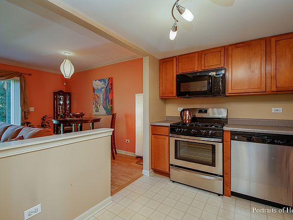 ABSOLUTELY STUNNING 2 bedroom townhome with open floor plan. This home boasts impressive upgrades including crown moldings, white trim & doors, wood laminate floors, oak cabinetry, New Stainless Steel Appliances, light fixtures and a new roof. The spacious sun-drenched living room displays a breathtaking view of nature through the extra wide sliding glass doors. The enormous master suite offers a vaulted ceiling, walk-in closet and a 2nd wall closet. The master bath has a double bowl vanity and new vinyl wood floors. Other highlights include a private entrance, patio, 1 car garage with extra long driveway. Enjoy the walking paths, ponds and the fabulous restaurants and shopping minutes away. WELCOME HOME!