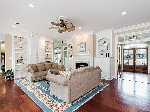Beautiful home, with tons of curb appeal, nestled on 2.4 acres on a quiet, cul-de-sac lot in popular Sunnyside Estates. This home offers 4 bedrooms, 3 bathrooms, an office, multiple patio areas, mature trees and so much more. The front porch welcomes you with southern charm as you approach down the winding driveway. Inside, the living room offers wood flooring, a warm fireplace flanked by dual built-ins and plenty of windows for natural lighting. The kitchen has granite countertops, white painted cabinetry, stainless appliances, an island with a quartz countertop, multiple pantries, a computer nook and a wet bar/wine display area. Off of the kitchen you have a breakfast area, great for a peaceful morning enjoying the views of the backyard. Off of the foyer, you have a formal dining to one side and a nice size office on the other side. The primary suite is spacious and offers wood flooring in the bedroom while the primary bath has dual vanities, a large tub, a separate shower and large walk-in closet. The 3 additional bedrooms are all a nice size and have large closets. Storage is not a problem in this home, with plenty of storage throughout the home. Outside, you find multiple seating areas to enjoy the beauty of the lush landscaping and mature trees. Solar panels have been installed which help greatly with the electric bill! Plenty of parking with a double car garage, additional garage bay, and extra parking spaces. Call today for details.