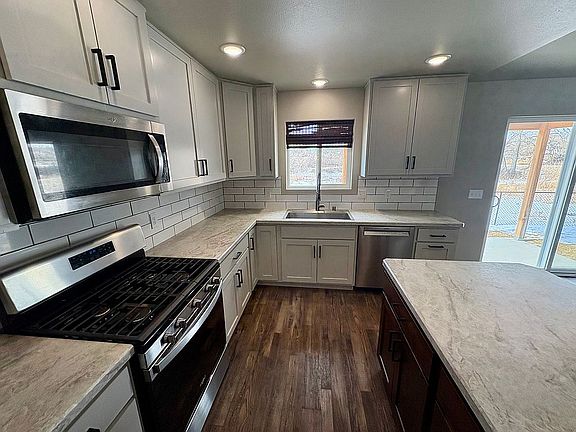 Beautiful 4 bedroom, 3 bath home conveniently located on the outskirts of the city of Laurel with easy access to the interstate. The three car garage offers ample storage room for vehicles and toys. Built in 2022, this 2,800 square foot home is turn key. The quarter acre corner lot has underground sprinklers; and established aspen, maple, and cedar trees. Do not be surprised to see deer and pheasants in the undeveloped land behind the property and enjoy the mature cottonwood trees throughout the seasons. Inside, the living room offers plenty of natural light plus a gas fireplace. Cathedral ceilings welcome in even more light. Enjoy the open kitchen with plenty of storage as well as the corner pantry. Appliances included with the home are the fridge, gas range, microwave, and Bosch dishwasher. The master bedroom is complete with an en suite bathroom boasting a tile shower and a generous walk-in closet. Laundry hookups are conveniently located upstairs. Downstairs you will find two more bedrooms and the third bathroom, as well as a spacious family room.