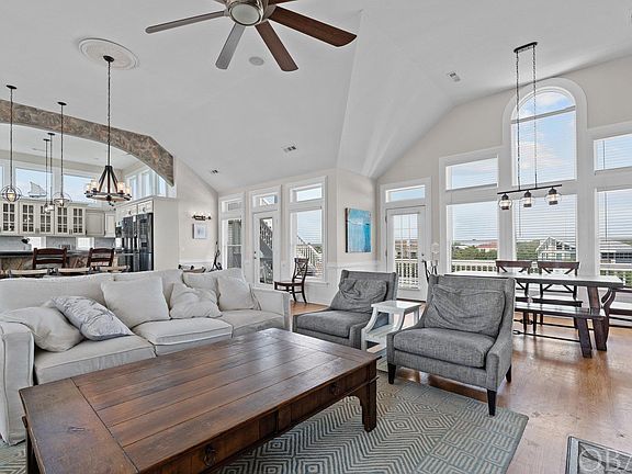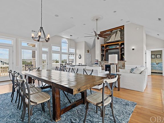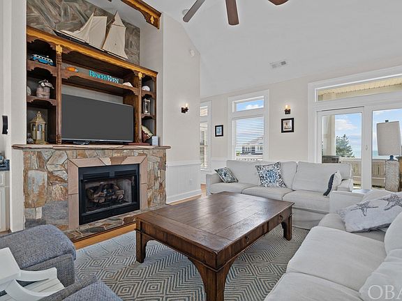 This semi-oceanfront vacation rental property is a luxurious haven that provides a perfect blend of comfort, elegance, and breathtaking views. With 9 bedrooms, ensuite bathrooms, elevator, sauna, rooftop crow's nest, theater room, game room with kitchenette, private pool & hot tub, as well as a cabana, this 5700+ square foot retreat offers the discerning buyer a turnkey opportunity to own an exquisite income-producing retreat. This stunning home showcases a stone façade that immediately captures your attention. The exterior is complemented by well-maintained landscaping, further enhancing its curb appeal. The open floor plan seamlessly blends the living, dining, and kitchen areas, creating a spacious and inviting atmosphere. Large windows and glass doors allow natural light to flood the space while offering picturesque views of the ocean. The upper level of the home is adorned with soaring ceilings, hardwood floors and stone accents adding warmth and sophistication to the living spaces. The renovated gourmet kitchen has sleek granite countertops and soft close cabinetry, offering both beauty and functionality. The abundance of counter space provides ample room for meal preparation, while the top-of-the-line appliances cater to the needs of even the most discerning chefs. Whether you're cooking for a large group or preparing a snack, this well-appointed kitchen is a culinary haven. The spacious living area serves as a gathering space for relaxation, conversation, and entertainment. A cozy stone-accented gas fireplace (perfect for those cooler evenings) adds a touch of charm and warmth. Adjacent to the living area, you'll find multiple dining spaces including a stone-accented breakfast bar and large tables that can accommodate the whole group for memorable meals. The sundeck on this level boasts mesmerizing views of the ocean. Imagine dining al fresco or sipping your morning coffee while taking in the sunrise. One of the highlights of this property is the rooftop crow's nest, offering 360° panoramic views of the ocean, sound, and coastal landscape. This exclusive space is perfect for stargazing, hosting evening gatherings, or simply enjoying the sunrise or sunset in a serene setting. The upper level features the first of the 9 well-appointed bedrooms, each boasting its own ensuite bathroom, providing privacy and comfort for every guest. Four more bedrooms are on the mid-level, along with a comfortable bonus space/ lounge area. The final 3 bedrooms and laundry are on the ground level. For entertainment and relaxation, the ground level is where you will find a sauna, the game room featuring a full kitchenette, pool table and arcade game machine, and the theater room to watch your favorite movies. This floor provides the perfect retreat for indoor fun. Step outside to the backyard oasis, where you'll find a cabana pool house with an outdoor kitchen. This area is ideal for hosting barbecues and poolside parties. Lounge by the pool, take a refreshing dip, or soak in the sun while enjoying the coastal breeze. The property offers easy access to the beach, where you can indulge in various water activities or simply relax on the sand. Corolla, known for its charming shops, restaurants, and historical sites, offers a multitude of attractions and experiences for everyone to enjoy. From the stone facade to the ocean views, elevated kitchen, hardwood floors, fireplaces, private pool/ hot tub and cabana, this turnkey vacation rental property encompasses a wealth of luxurious features. The presence of an elevator, sauna, and rooftop crow's nest 360° views further adds to the allure of this exceptional property, ensuring an indulgent, relaxing vacation getaway. With its thoughtfully designed interior spaces, luxe amenities, and captivating ocean views, this vacation retreat combines luxury and convenience with a range of impressive features offering a seamless blend of elegance, comfort, and coastal charm.