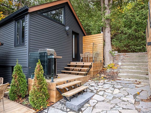 Experience unparalleled waterfront luxury on Rice Lake with this exceptional, four-season property. Designed for multi-generational enjoyment and income potential, the retreat boasts eight buildings in total. There is a main 2 BR house and Nordic-inspired modern cabins, each winterized and complete with a state-of-the-art kitchen, cozy living room, fireplace, and dining area. Bedrooms feature Casper queen mattresses, and every bathroom offers a relaxing rain shower. Each cabin comfortably accommodates 2-6 people, totaling up to 29. All new furniture is included. Enjoy multi-level recreation areas, a large 50ft composite dock, kayaks, paddleboards, a firepit, a dedicated yoga platform, a jacuzzi, and a sauna, all perfect for relaxation. Kids can explore a clubhouse designed just for them. An upgraded infrastructure includes EV Charging capabilities with a Porsche EV charging station, offers 2 electrical services (400-amp service and 200amp), and septic and top-tier water filtration systems. Zoned for commercial and recreational use, this fully furnished retreat, with designer furnishings and outdoor equipment, is a rare opportunity.