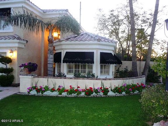 This beautiful custom home was designed by Valley acclaimed artist Catherine Dressler. Exquisite custom finishes and paintings t/o the home including beveled glass entry, stained glass t/o, 4 fireplaces, plantation shutters, hardwood & travertine floors w/custom marble borders & mosaic, beautiful eat-in kitchen with granite countertops, custom maple cabinets, stainless appliances, a formal dining room, a gorgeous master suite with soaking tub and a large laundry room.The grounds are professionally landscaped and the spacious backyard has a large lawn area and a pool. This home is a real showpiece and the custom paintings and finishes in this home are absolutely gorgeous in person! It's a MUST SEE!