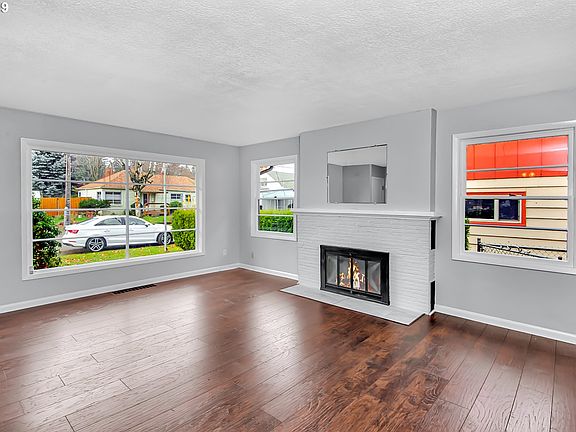Tastefully updated mid-century ranch! Beautiful kitchen with brand new quartz countertops, subway tile backsplash and stainless appliances. New flooring throughout, new interior and exterior paint. Bathroom with tile floor and tub surround. Laundry room has built-in storage and includes washer/dryer. Large windows and lots of daylight. Double garage with doors opening on both ends. Newer roof. Easy commute to downtown! [Home Energy Score = 5. HES Report at https://rpt.greenbuildingregistry.com/hes/OR10150929]
