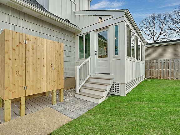 A 3 season sunroom with its high ceilings and reclaimed wood beams, outdoor shower, paver patio, fenced yard and ample off street parking complete this coastal living home.
