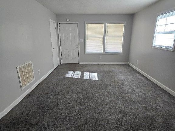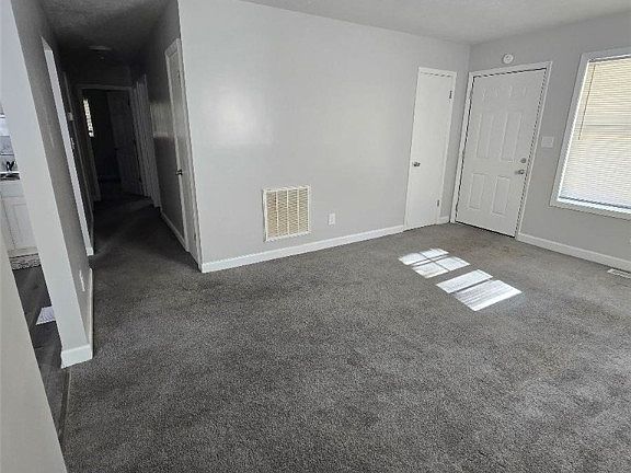 Step inside to find a welcoming living room with plush carpeting. The updated kitchen boasts white cabinets, granite countertops, and a stylish tile backsplash. Down the hall, you’ll discover an updated bathroom and three comfortable bedrooms, each with ample closet space. The home also includes a dedicated laundry room for added convenience.