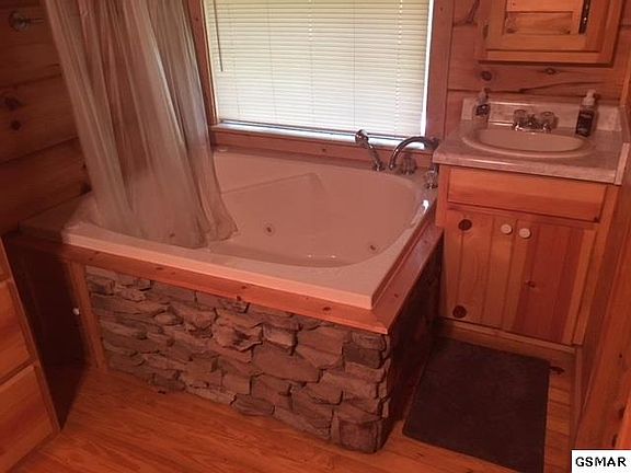 2 bedroom/ 2 bath park model r/v on a one bedroom septic system. Log railings on large partially covered front deck. One car garage. Gas log fireplace. Paved driveway. Stack stone gas log fireplace. Has never been on rental. The home has a split unit and also a wall unit for heat and air. All measurements are approximate and information was obtained from the county tax records. The buyer should verify all information. The well is shared. The propane tank is leased. The seller does not know of any issues with the home but is selling as-is.