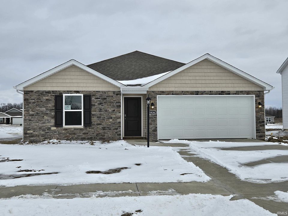 This home is near completion! Start Your Home Search With Us! Welcome to a new lifestyle & new home! Come experience the high quality of our new homes made w/ precise craftsmanship, desirable floor plans, and modern interiors & exteriors. Located in the Riverwalk Community, discover the Freeport floor plan, a cozy and efficient one-story home offering 1,501 sq ft of smartly designed living space. This floorplan includes 3 beds, 2 baths, w/ 2 Car Gar., making it ideal for first time homebuyers, downsizers, or anyone seeking a low-maintenance lifestyle. Inside, an open concept layout creates a seamless flow between the kitchen, dining area, and spacious family room - perfect for everyday living & casual gatherings. The kitchen features a convenient pantry, Elkins white cabinetry & generous Carrara quartz counters. The primary suite offers a private retreat w/ a comfortable bath, while two additional bedrooms provide flexibility for guests, a home office, or hobbies. The exterior is finished w/ Chiseled Edge Boulder Trail stone, Sandcastle/white vinyl siding, and chocolate brown shutters. All D.R. Horton Fort Wayne homes include our Americas Smart Home® Technology, a favorite of our homeowners, which allows you to monitor & control your home.