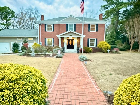 Situated on a quiet street in the heart of Washington, this 1950's newly updated beauty welcomes you home! Located on a sprawling 0.62 acre lot, this stately home offers 4 bedrooms, 3.5 baths, a covered front porch, inviting foyer, and gleaming hardwoods throughout! Features include a spacious living room offering a cozy fireplace and built-ins, a formal dining room for all of your holiday gatherings, and an updated kitchen w/ granite counters, stainless steel appliances & a breakfast bar! The first floor primary suite offers a gorgeous attached bath w/ a double vanity, lots of built-in storage, and a walk-in tiled shower! Upstairs, you'll find a second primary suite with its own full bath plus two additional guest bedrooms and an additional guest bath! The attached carport leads you to the detached 2-car garage! New roof in 2017, new downstairs HVAC unit in 2019, new Pella windows in 2020, and a new natural gas water heater in 2022! Conveniently located near shopping, dining, medical facilities and more!