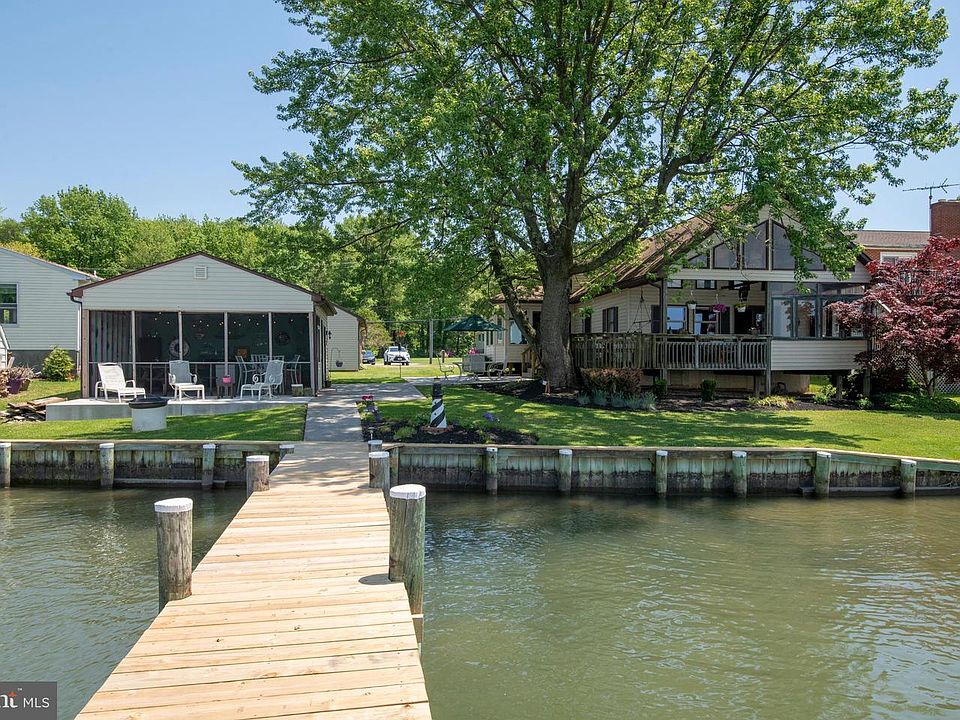 WATERFRONT Home in Sought After BOWLEYS QUARTERS! 100 Ft frontage on Water! Fun in the Sun and Water with only minutes to the Bay and Hart-Miller Island! 3 Bedrooms, 2 Baths, Plus a 3 CAR GARAGE! Living Room 23 x 10 with wood-burning fireplace, Dining Rm, 1st floor Laundry, Family Room 12 x 23 with bar, cathedral ceiling, and coal/wood Stove, Galley Kitchen with granite counters opening to 11 x 9 Breakfast Rm with a view of water and slider to wrap-around deck. Plus a Basement! Lots of storage areas! Sprawling patio areas, 20X13 Crab shack to enjoy having fun and entertaining! 200 Ft " L Shaped Pier' with 4 (30 AMP) electrical outlets and water, all stringers and top boards replaced in 2020. Take a spin on your boat, jet ski, or just watch the activities on the water! Relaxing on Frog Mortar Creek each day is a vacation! Fun in the sun! Perfect for fishing and crabbing!