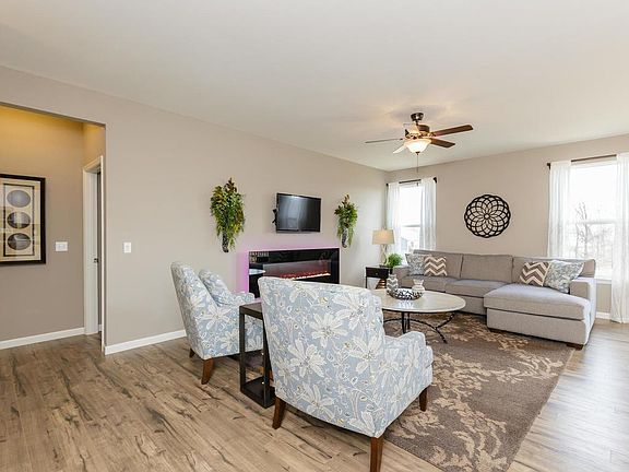 Top selling, beautifully presented, Payne Family Homes display home now available for immediate move in! This impressive,3 bedroom, 2 bathroom, 1,746 square foot ranch display home is available and is loaded with todays most popular features. This impressive home has 9 foot ceilings, wood laminate flooring in the Entry-Extended Entry-Great Room-Breakfast Room, luxury vinyl tile in the Laundry Room and Bathrooms, an open floor plan, 42 inch cabinets, stainless steel appliances, recessed can lighting, raised height double bowl vanities in the Master Bath, marble shower with a seat in the Master, open stairs to the lower level with spindled railing, easy access to the laundry room from the Master Suite, ceiling fans in the Master and Great Room, custom wall color, 50 gallon water heater, walkout basement, cedar deck, Jeld wen low E windows, rough in bath and more. The exterior is inviting with architectural shingles, low maintenance vinyl siding, vertical accent siding in the gables, full yard sod, professional landscaping, irrigation system and garage coach lights. Enjoy a quiet, peaceful setting but be minutes from shopping, schools, restaurants, services and easy access to Highways 79 and I-70. There are community lakes, a playground and a pavilion for homeowners to enjoy!