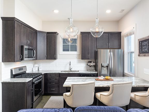 Must see cottage-style home in the heart of The Nations! A main floor open floorpan is great for entertaining with a kitchen featuring quartz countertops, stainless steel appliances, and a walk-in pantry. The primary bedroom located on the second floor includes a private balcony. Energy efficient upgrades include energy star windows, HVAC system, tankless water heater & foam insulation. Other property highlights include finished concrete flooring, contemporary fixtures/hardware, extra large closets, LED recessed lighting, plush carpeting, security system, keyless entry front door, and soft close cabinet doors/drawers. The walkability to everything the Nations has to offer is a highlight of this home.