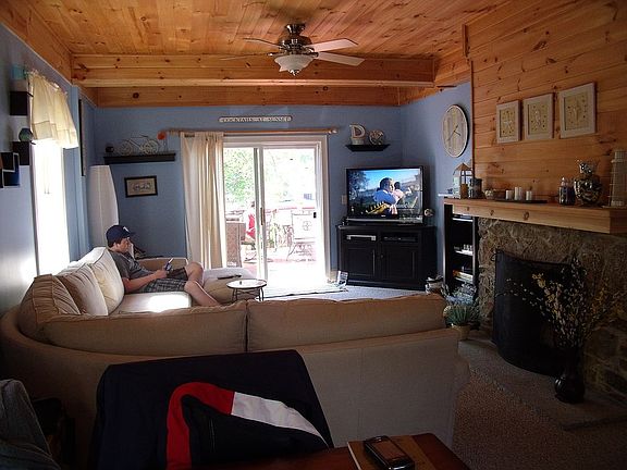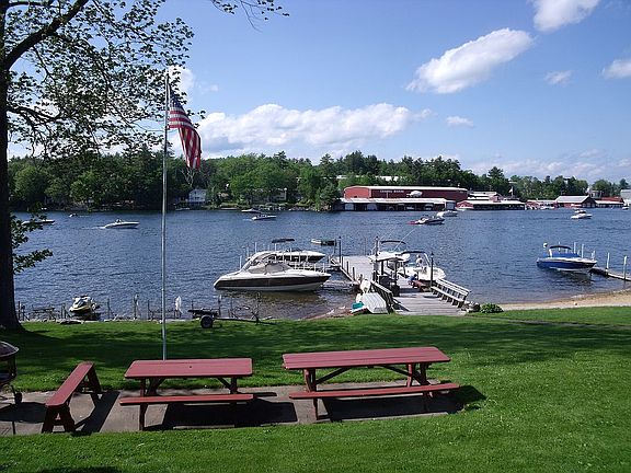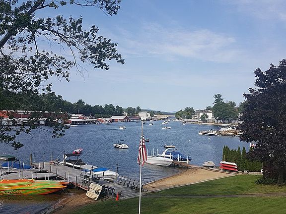 Completely remodeled in 2005. Luxury waterfront condo with beautiful deck overlooking Paugus Bay. Gourmet kitchen with high-end appliances. Large living room with sliders to deck and lake. Large enough for separate dining area which could accommodate 6-8 people easily, but with the view outside, who wants to eat in? Four bedrooms, 2+ bathrooms. Master bedroom opens onto private porch connected to main deck. Gorgeous sundowns on the west side. Private dock - end position. Shared beach, great green area. A phenomenal primary or secondary home.