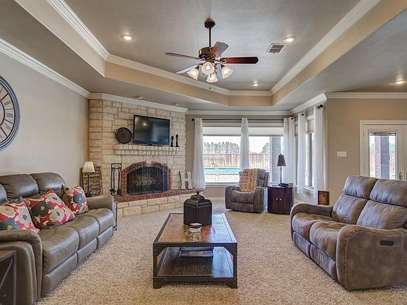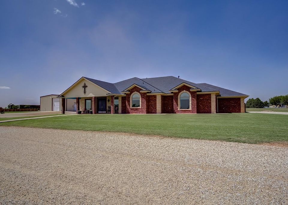 FOR SALE IN SOUTH LUBBOCK This gorgeous custom-built home can be yours! The amazing 4/3/2 attached (+ 2 detached) open-concept beauty boasts a swimming pool, 2 room basement, huge kitchen & bathrooms and an abundance of amenities and nifty built-ins! It sits on 4 acres, in TWO school districts: Lubbock Cooper AND New Home, has a huge 2 sectioned foam-insulated barn/shop with overhead doors, covered- full-hook-up RV parking, and an additional lean-to. In this well thought out master-craftsman home, you’ll also enjoy zoned heat & air and a sound system with speakers throughout the house and back porch. Inside you will enjoy large rooms, a stunning wood-burning fireplace, a phenomenal kitchen with granite countertops, stainless steel appliances, additional prep sink, built-in ice maker & R.O water + every handy built-in you could imagine. You will enjoy wood floors, carpeted living, bedrooms and basement, tile bathrooms, a huge master bedroom with an exquisite master bathroom that has an extra-large, overflow tub. There are large walk-in closets in every bedroom all but one 3 rods high with built-in dressers, shelves & pegboards. You have a large laundry room with bench-hook-cubby mud-room area, sink, and large broom/vacuum closet. The basement has 2 rooms: 1st can be a workout room, playroom, office, craft room, etc. It has carpet resting on top of the wood floor giving you either option and a large walk-in under-stairs closet. 2nd is a media room complete with a huge 126” screen, projector, surround sound, media closet, two murphy beds, and built-in shelves to house your movies or books. Your attached garage is largely oversized at 28.7 x 22.10 and can easily house an extra fridge & freezer in the front, shelves, + a lawnmower & motorcycle in the middle. Through your garage is a large storage room with an easy-access stairway to the large floored attic. The low-profile back door threshold, 3ft wide doors, 2 roll-in showers, and drawers as lower cabinets make this home very wheelchair accessible –excluding the basement and 4th bedroom. The detached 40x15 foam-insulated garage is attached to the barn and can hold up to 3 cars or be an extra barn. You will have excellent neighbors, extra-large front and back porches with bug-deterrent ceilings & tall, double doors. Outside extras include 2 Bradford Pears, meticulously maintained lawns with sprinkler systems, 2 electric gated entries, fenced acreage, with double-faced privacy fence for the large backyard. There are paved driveways and also plenty of gravel on the acreage allowing you to pull around the entire house, barn, and behind the barn up to the gated back road. A sidewalk wraps all the way around the home and you have a brand new roof, rain gutters, and a rain barrel. Enjoy your lighted arbor oasis/garden in the backyard corner, the one-season-old 6-person hot tub, and immediate access to the shower room/ mudroom & bathroom off the back porch when enjoying your salt-water pool (can be chlorinated if you prefer). You don’t want to miss this one of a kind craftsman-exquisite home! (The post office is in Wilson, TX giving a Wilson address, but the home and mailbox sit on South Slide Road in Lubbock/Slide, Tx. 4th bedroom is smaller and may be used as a nursery, office, or craft room. It is currently pink, the seller has neutral paint and will paint if desired.) ROOM SIZES: Living 28x17 / Entry 14x7 / Dining 14x12 / Kitchen 20x21 / Master 21x16 + 8x2 window outset / Bd 2 14x12 / Bd 3 15x12 / Bd 4 12x8.5 / Basement 970sf = Hallway + Media 23x21 & Workout 15x13 / Laundry 15x8 / Garage 28x23