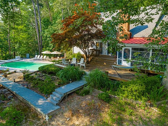 Fantastic Wilton Creek Road location and broad open views at "River Watch". Situated on 3+ acres on protected Wilton Creek, this private deep-water enclave has quick access to the Piankatank River & the Chesapeake Bay. Enjoy expansive outdoor living space w/ screen porch, loads of decking & waterfront salt water pool with new automatic cover. Newly constructed dock, new 10,000 lb. boat lift and floating dock + new rip rap & approx. 300' of shoreline. Gather with family and friends in spacious great room with comfortable river vibe, vaulted ceiling, brick FP and adjacent dining room. Kitchen is complete with SS appliances, beverage fridge, granite countertops & breakfast rm First floor primary BR features access to waterside deck, ensuite bath, jetted tub + separate shower. Upstairs offers amazing space for friends and family with 3 additional BR's plus bonus room perfect for bunks or storage. Quality Andersen casement doors & windows, central vac, irrigation system, water filtration sys and no flood zone. Work remotely w/ hard wired & wifi ethernet. Perfect for year-round living or a welcome retreat from life's hectic pace. Relax, renew, and enjoy life on the water at River Watch.