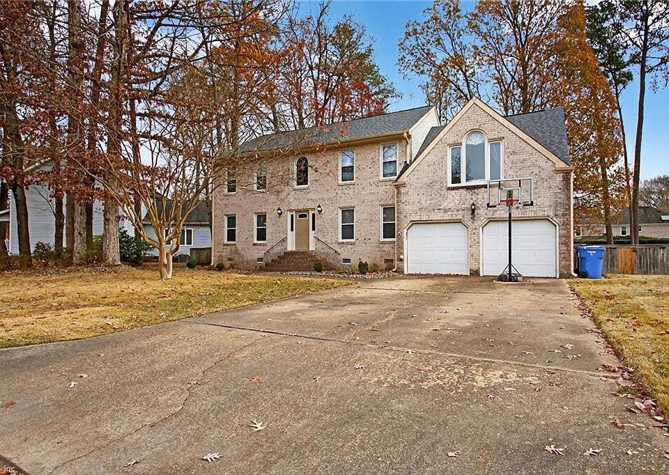 Welcome to your new home in sought after Kemp Woods neighborhood. This all-brick house features an open 2 story entrance foyer, a large kitchen with stainless appliances, island, custom countertops & backsplash, breakfast nook to enjoy your morning coffee while looking over the large, fenced backyard. Additional features include a Formal Living & Dining Rooms, an open family room with a gas fireplace. The Primary Bedroom has walk in closets and a private bath with dual sinks, shower stall and a jetted tub to soak away the day. The second floor also has 3 additional bedrooms and full bathroom. The property features a 2-car attached garage and plenty of driveway parking for family and friends. The backyard is fully fenced and offers a large deck for entertaining and a storage shed/workshop (as is) for storage or hobbyists. Located just minutes from the Greenbrier area of Chesapeake which offers shopping, restaurants and easy access to all of Hampton Roads. Come see this beauty now!