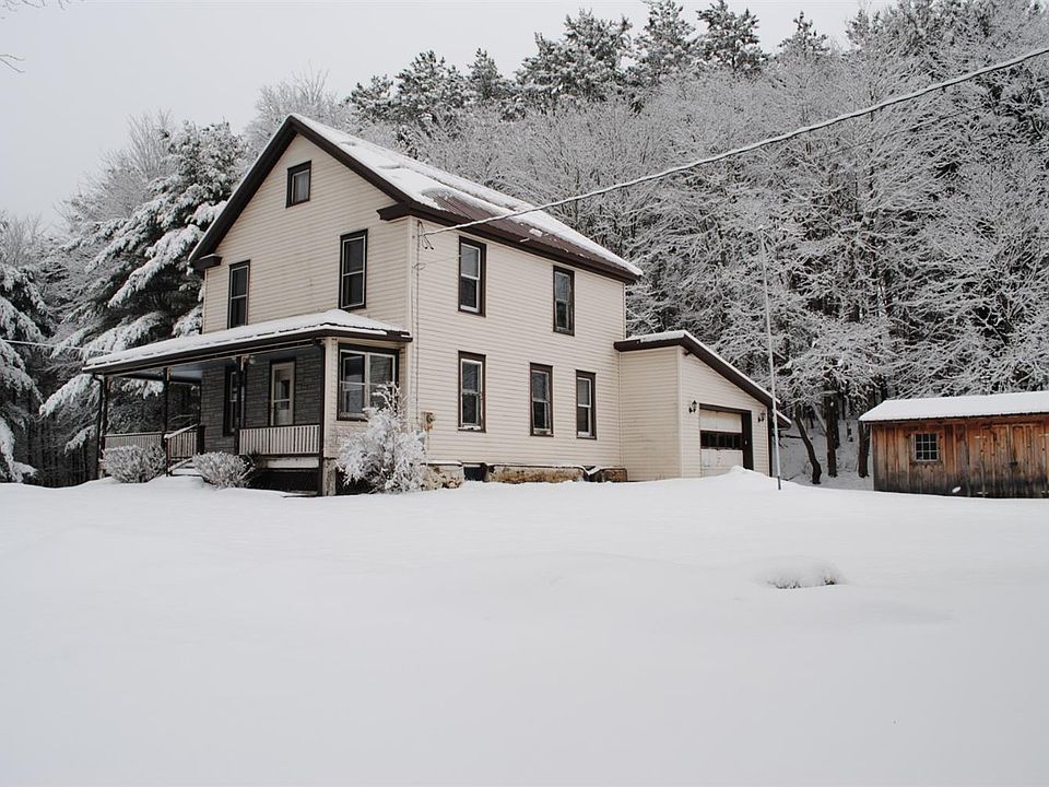 This charming farmhouse offers 3 bedrooms and 1 1/2 baths with road frontage on 2 town maintained roads. Original wood floors and trim add lots of character to the home. The dining room has gorgeous built-in cabinets that provide ample storage and large windows to let in plenty of sunshine. The kitchen has newer stainless steel appliances and more built-in cabinets. Enter the roomy living room from either the kitchen or dining rooms. Upstairs you will find 3 bedrooms and a large full bath. The laundry/mudroom, a must for a country home, is conveniently located off of the kitchen and leads to the attached garage. A covered wrap-around porch with access from the living room and kitchen is the perfect spot to sit and relax. Located minutes to Stamford and close to hiking, snowmobiling, golfing, tons of state and city land, shopping, and restaurants. Experience all that the Catskills has to offer within 3 hours of the GWB. Seller is a NY State Licensed Real Estate Salesperson.