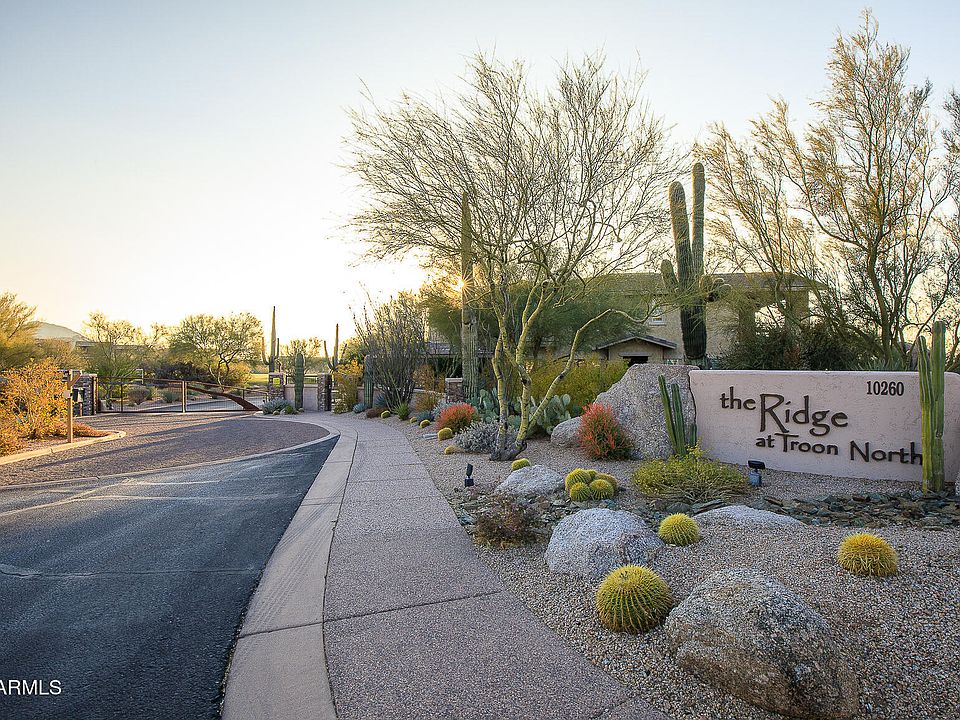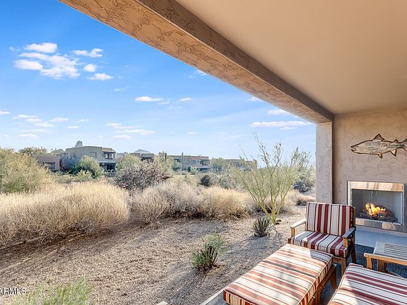 Beautifully upgraded, single-level townhouse on a premium golf course lot with view of Pinnacle Peak! This spacious 2-bed, 2-bath home plus den features an open great room with expansive multi-slide patio doors that lead to a covered patio complete with a cozy fireplace—ideal for true indoor/outdoor living. The gourmet kitchen offers an inviting dining area, abundant cabinetry, and an oversized granite island. The double-door den provides an excellent flex space for a home office, library or 3rd bedroom. The generous primary suite includes a private patio exit, a California Closets walk-in and a spa-inspired ensuite bath. The second bedroom is equipped with a built-in Murphy bed, dresser, and desk system. All within walking distance of Troon North golf club, and hiking/biking trails !! Heated spa, sparkling pool, work out facility and visitor parking are close to the unit. This is an amazing home and can be purchased "turn key", just ask the listing agent for details!