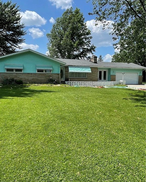 Large Ranch with additional lot for over One Acre of property! Built in 1960 as 3 bdrm, Liv Rm, Din Rm, Eat in Kitchen with 2 car garage. Home was built on to include Family Rm with additional Din Area. Cathedral ceiling makes this an open and airy space. Living Rm has woodburning Stone front Fireplace. Two bathrooms, one 3 piece bath in main bedroom and full bath off hallway. Another 2 plus garage was added to make this a home with a FOUR CAR GARAGE. Gorgeous lot with farm land behind it. So many big ticket improvements (about $60K over last 3 years) inc: Lifetime Home Warranty on whole house waterproofing, Furnace, A/C, Roof, H2O, Back Patio (covered), Double Front doors & steps, Kitchen appls (wall oven, stovetop, frig) & Septic system cleanout with new motor. There are sliding doors, double doors and many windows giving this home a unique layout! The Hardwood floors in bdrms, Liv Rm & Din Rm are fabulous.*LR & DR carpet covered. Eat in Kitchen does need updating. Big Closets everywhere. Huge Full basement has laundry area and is very ready for you to make it more living space! Front garage has front AND rear entrance with a covered patio area for great parties! Back garage is larger than 2 car space and ready for your workshop. Beautiful flat lot has plenty of room if you wanted to add a pool for backyard fun! Home is offered with a One Year Home Warranty for peace of mind. You will probably want to do some updating but with all the main components completed this can easily be done while you are comfortably living there. This home has been lovingly cared for and is waiting for you to love it too! Quick occupancy available so you and yours can enjoy summer while living in your new home.