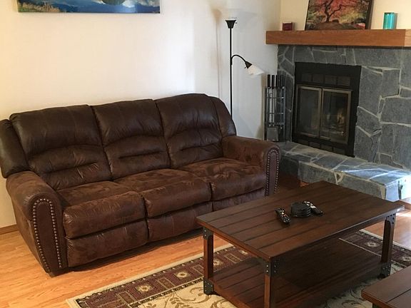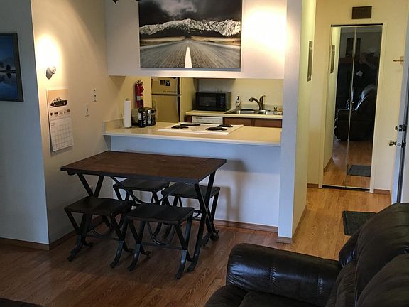 South Side, 2 bedrooms, 1 bath, condo with in-unit washer, dryer, and 1 car heated garage and large deck: $1250/mo rent includes Water, Trash, and garage heat. Quiet & Private corner unit with mountain views (NOT Parking lot views) Top floor of two story building Fresh paint New Carpet in bedrooms Hardwood laminate floors Heated Garage fits Yukon/Tahoe sized vehicle Additional parking available outside Washer and dryer in unit Wood burning fireplace Large deck Additional exterior storage Forced air heating system Convenient location within walking distance to Fred Meyers Ready for occupancy 5/1/18, South Side, 2 bedrooms, 1 bath, condo. With in-unit washer, dryer, and 1 car heated garage: Rent is $1,250/month includes water, trash, and garage heat. First month's rent, security deposit of $1,250, credit check, and application review required to move in. Please no calls after 9pm.